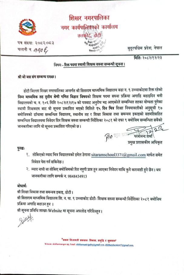 » रिक्त्त पदमा स्थायी शिक्षक सरुवा सम्बन्धी सूचना।
