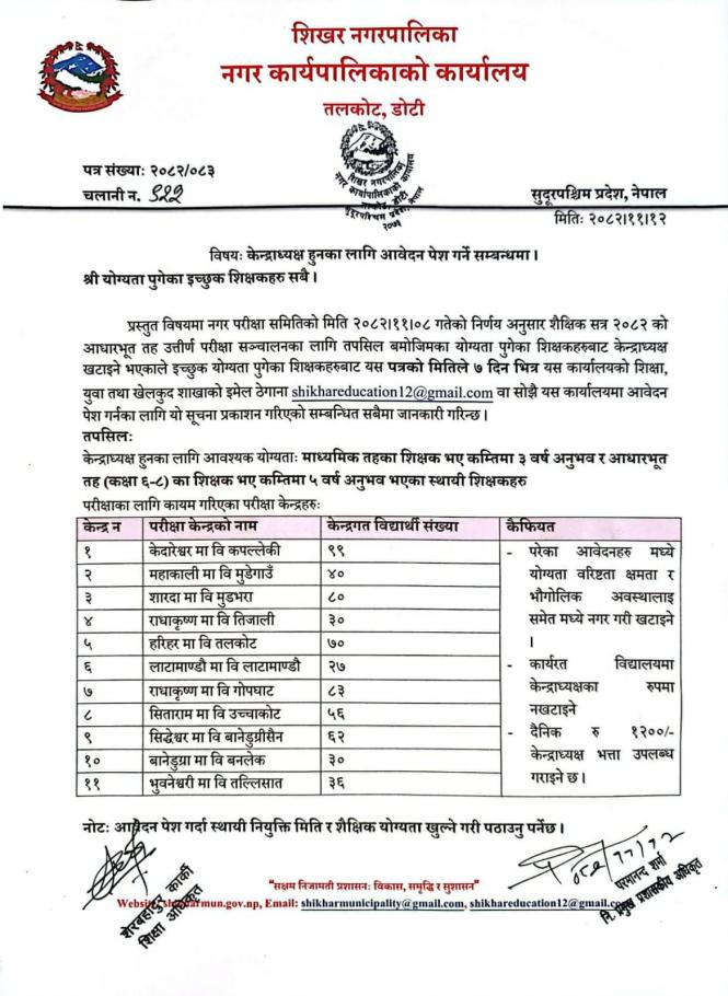 » केन्द्रध्यक्ष हुनका लागि आवेदन पेश गर्ने सम्बन्धमा।