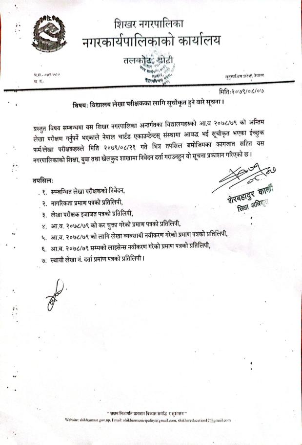 विधालय लेखा परीक्षकका लागि सूचीकृत हुने बारे सूचना।