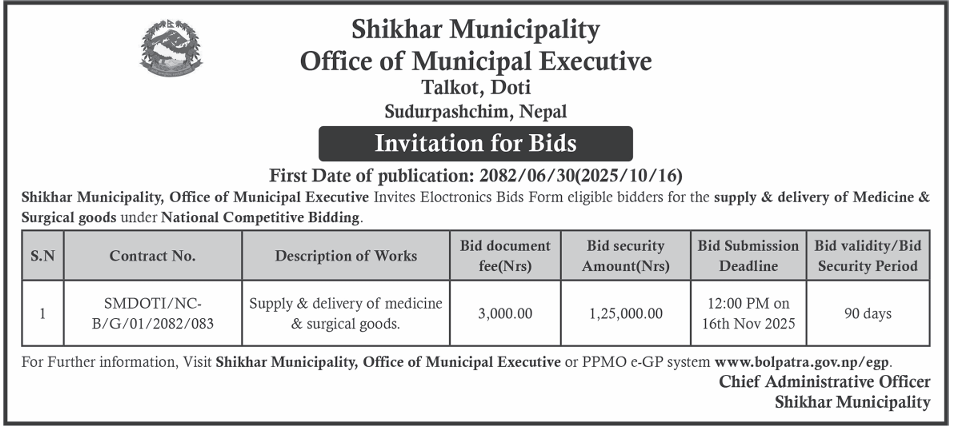 सार्वजनिक खरिद/बोलपत्र सूचना